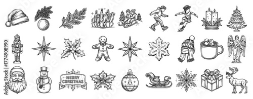 Fototapeta premium Christmas icon collection – festive holiday doodles pack from Santa to...