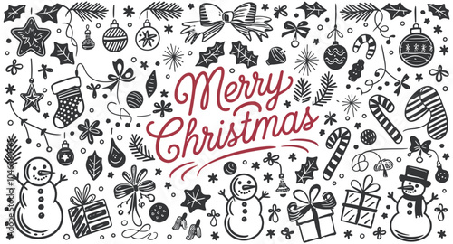 Fototapeta premium Christmas icons pattern with Merry Christmas text