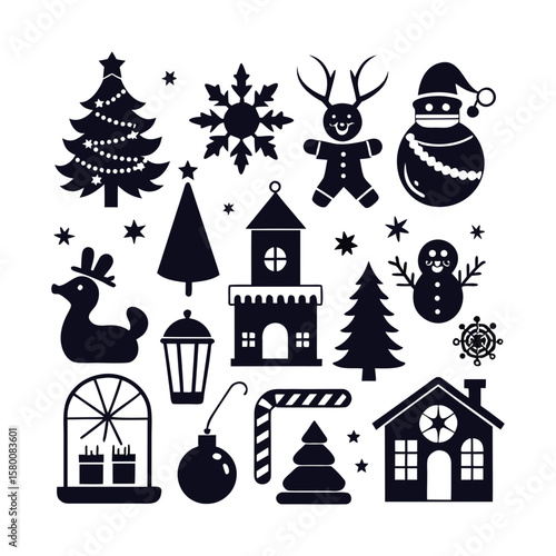 © Design Deck, Fototapeta premium Christmas icons set silhouette vector