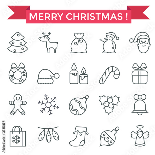 Naklejka premium Christmas icons, thin line, flat design