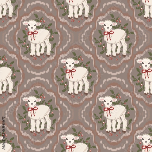 Obraz premium Christmas Ikat Seamless Pattern • Bohemian Textile Design • Fabric Texture • Digital Background for Print and Crafts