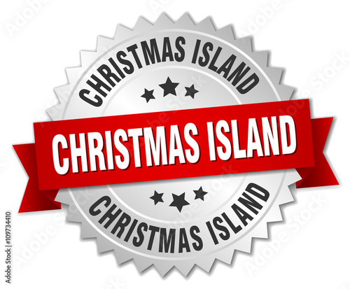 © Aquir, Obraz premium Christmas Island round silver badge with red ribbon