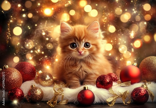 © Sakdecha, Obraz premium Christmas Kitten with Ornaments