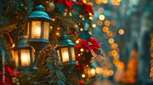 © julio, Fototapeta premium Christmas Lanterns on a Festive Tree