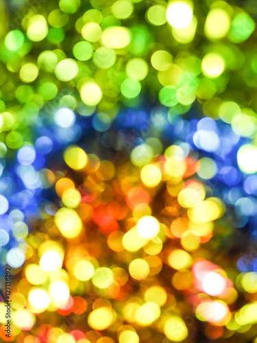 Fototapeta premium Christmas light bokeh background yellow, blue and green color.