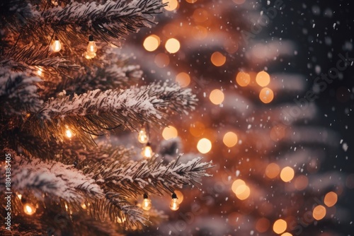 Fototapeta premium Christmas light on christmas tree night outdoors winter.