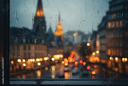 © reddish, Fototapeta premium Christmas lights blurred in the foreground with a city