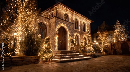 © Botboy, Fototapeta premium Christmas lights decorating houses