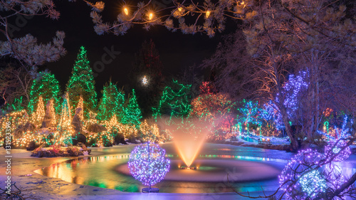 Naklejka premium Christmas lights decoration with holidays background,Vandusen garden,Vancouver BC Canada