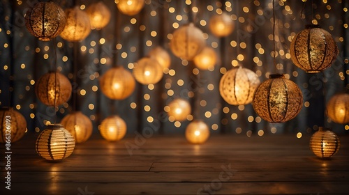 © Ali, Fototapeta premium Christmas lights hanging from the ceiling, illuminating the room.
