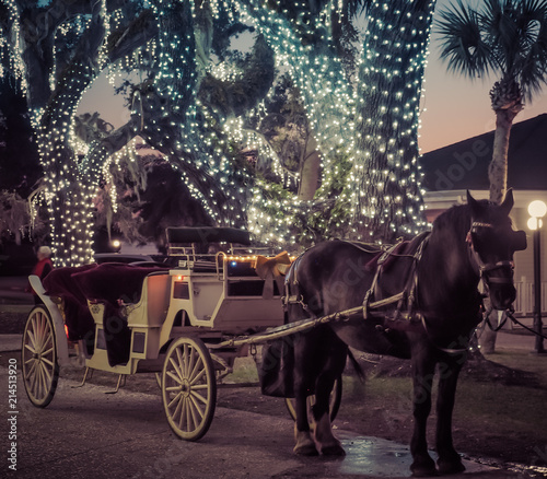 © Lisa, Fototapeta premium Christmas lights & horse drawn carriage