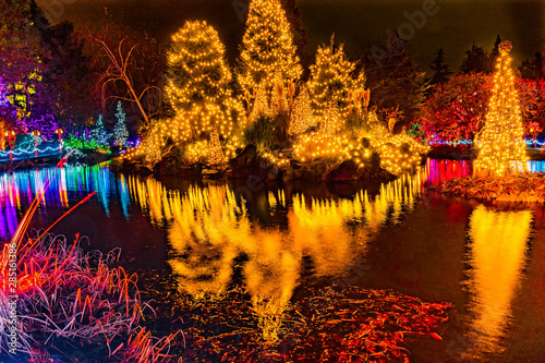 Obraz premium Christmas Lights Reflection Van Dusen Garden Vancouver BC Canada