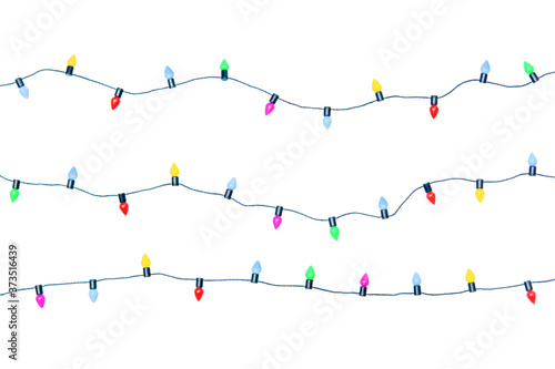 Naklejka premium Christmas lights string isolated on white background With clipping path..