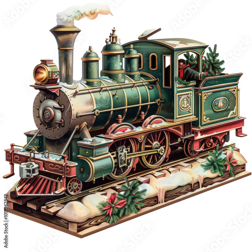 Fototapeta premium Christmas Locomotive Isolated on Transparent or White Background, PNG