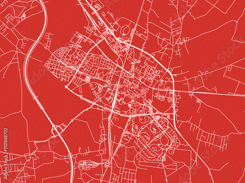© Vincent, Obraz premium Christmas Map of Lubin, Poland in Snowy White on Festive Red Background.