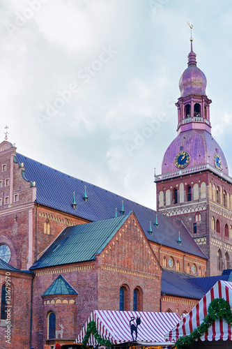 Obraz premium Christmas market at Dome Cathedral in Dome square in Riga