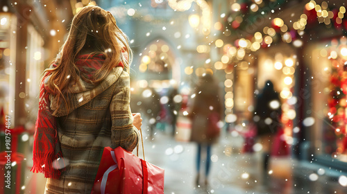 Obraz premium christmas market, girl shopping