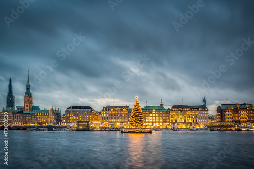 Obraz premium Christmas Market with Christmas Tree on Alster in Hamburg