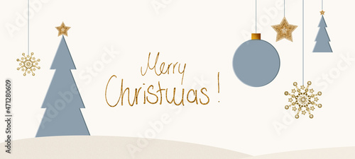 © Swetlana Wall, Fototapeta premium Christmas modern design with gray fir tree and decorations isolated