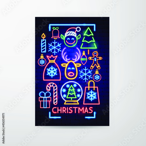 Fototapeta premium Christmas Neon Flyer. Vector Illustration of New Year Promotion.