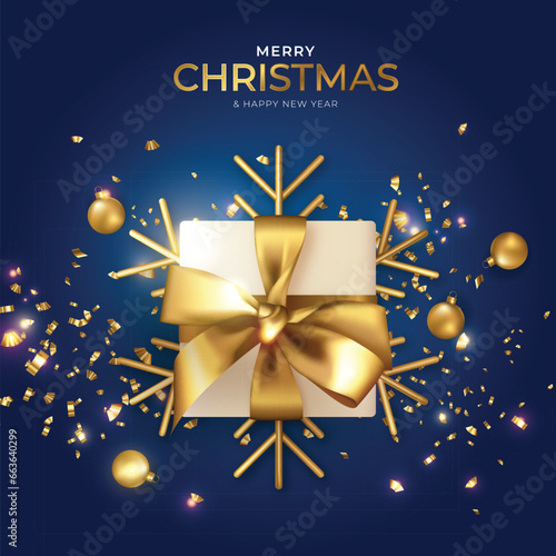Naklejka premium christmas new year greeting card with beautiful realistic present