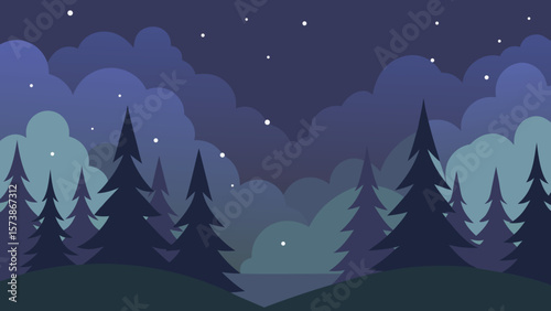 © Vokto, Naklejka premium christmas night landscape