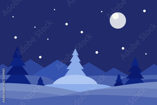 © Skpollob, Naklejka premium christmas night landscape with snow