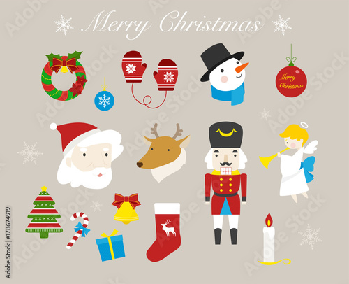 Naklejka premium Christmas object ornament vector flat design illustration set