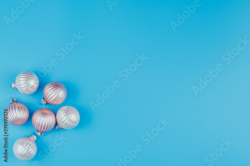 Fototapeta premium Christmas or New Years minimalistic background, with Christmas balls on blue.