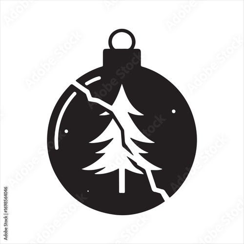 Obraz premium Christmas Ornament cracked with pine tree inside vector silhouette outline...