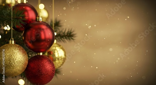 Fototapeta premium Christmas, Ornaments, Baubles, Red and Gold Christmas Ornaments on a Branch
