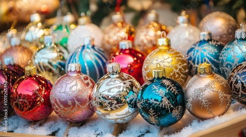 © atipong, Fototapeta premium Christmas ornaments in salzburg market austria