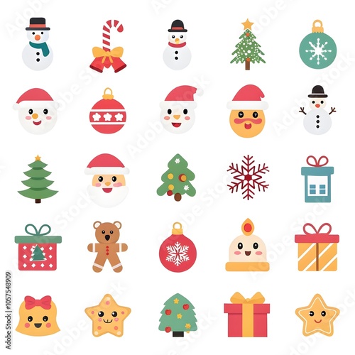 Fototapeta premium Christmas Ornaments with Santa Claus, Reindeer, and Snowman element collection