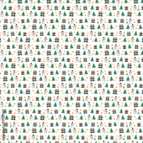 Fototapeta premium Christmas Pattern with Snowman and Presents