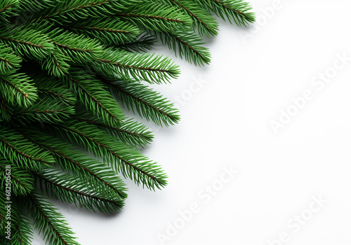© Alicina, Fototapeta premium Christmas pine branch on white background with free space for text. AI generated