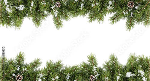 Obraz premium Christmas pine branches with snow and pine cones, creating a festive border...