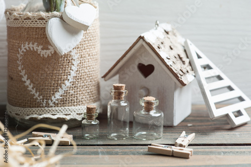 © Irina Bort, Obraz premium Christmas present packaging, wooden vintage toys