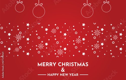 © MuhammadBahrudin, Naklejka premium christmas red background greeting card with snowflake and ball