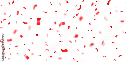 © Buffstock, Fototapeta premium Christmas red confetti falling on transparent. Falling red confetti and streamers seamless pattern on transparent background.
