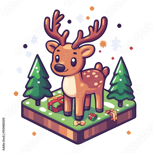 © John, Fototapeta premium Christmas Reindeer, 2D isometric flat cartoon vector illustration isolated on white background.