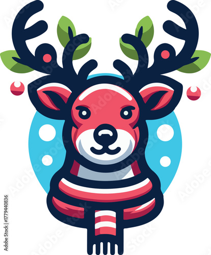 Naklejka premium Christmas reindeer face logo icon vector white background .