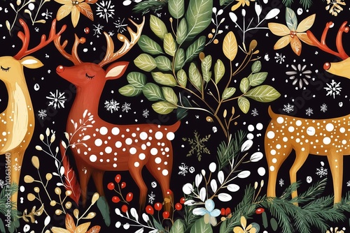 Obraz premium Christmas Reindeer Pattern with Floral Elements
