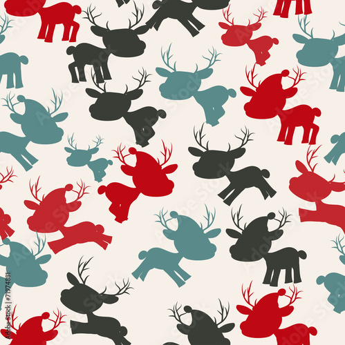 © Big Pearl, Naklejka premium christmas reindeer seamless pattern