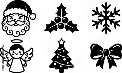 Fototapeta premium Christmas santa angel holly snowflake tree and bow icons