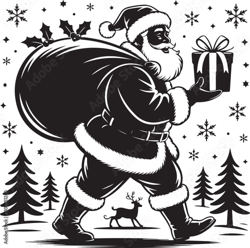 © Masud, Fototapeta premium Christmas Santa claus with gift silhouette vector illustration isolated on a white background