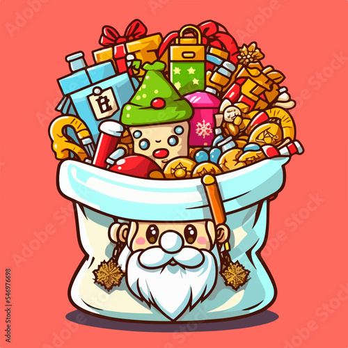 Naklejka premium Christmas santa's bag sticker, xmas bag full of toys printable stickers...