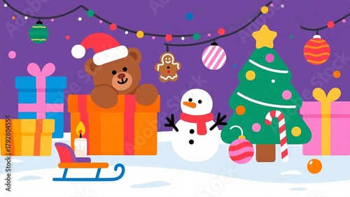 Naklejka premium Christmas scene with toys and decorations
