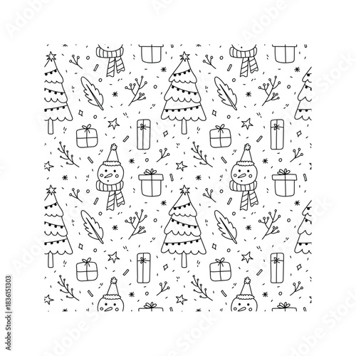 Obraz premium Christmas seamless pattern with trees and snowmen.