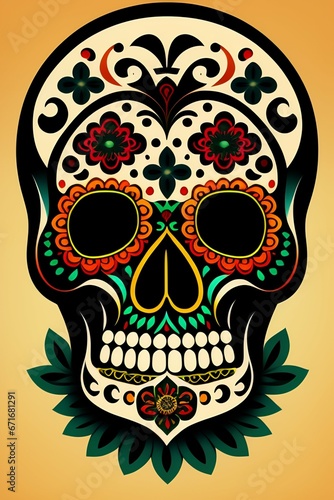 © Amir, Fototapeta premium christmas skull with wings and flowers