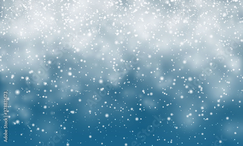 Obraz premium Christmas snow. Falling snowflakes on blue background. Snowfall. Vector illustration